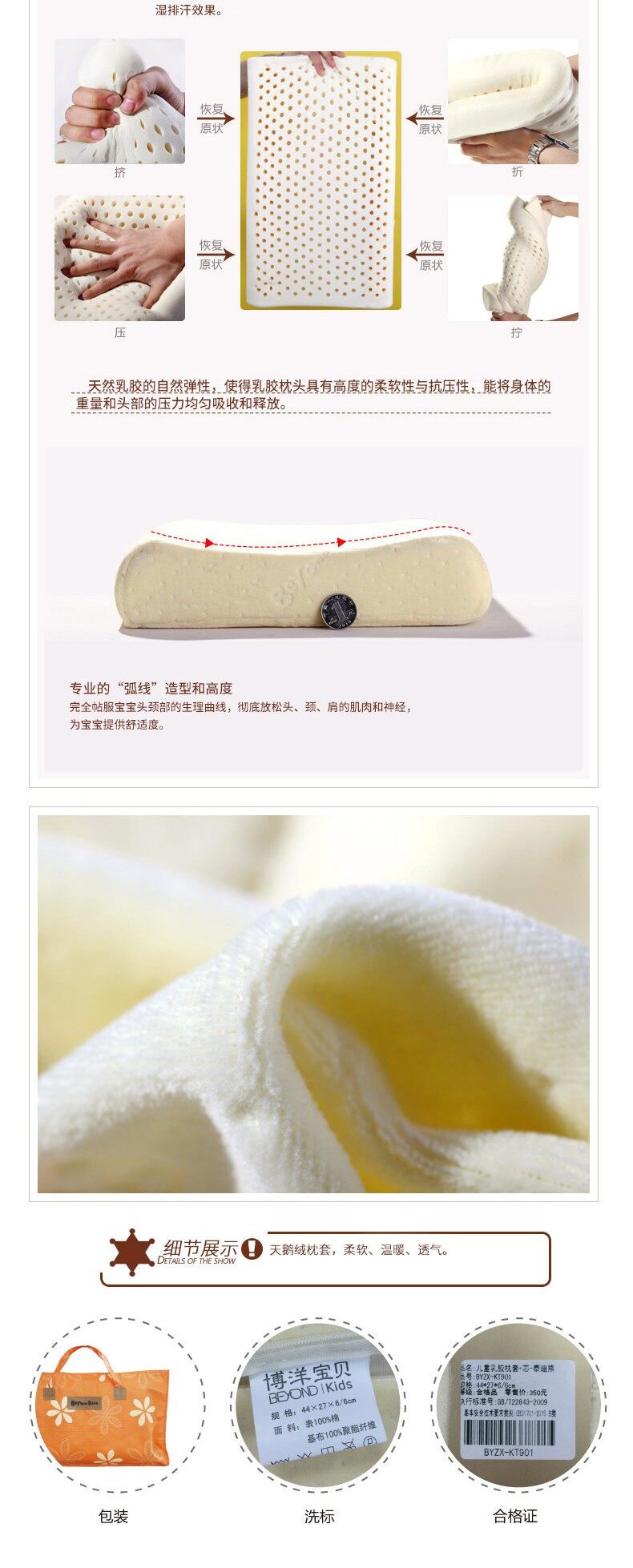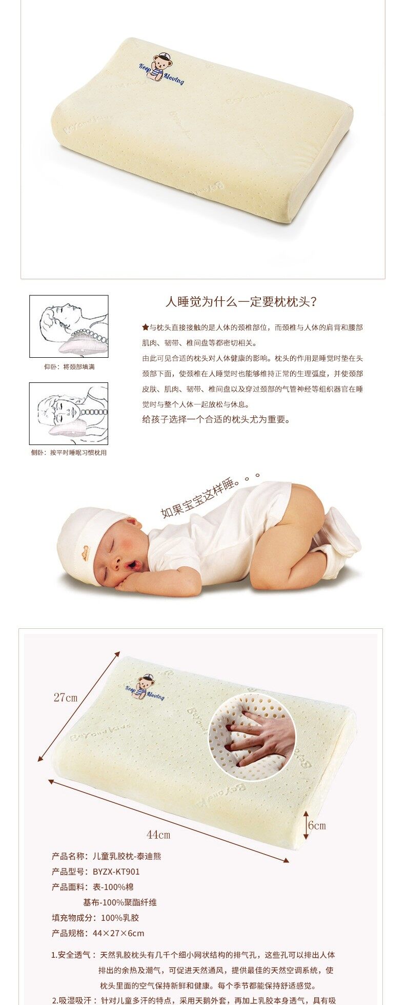 • 博洋宝贝 儿童乳胶枕-泰迪熊 BYZX-KT901 44×27×6cm BYZX-KT901