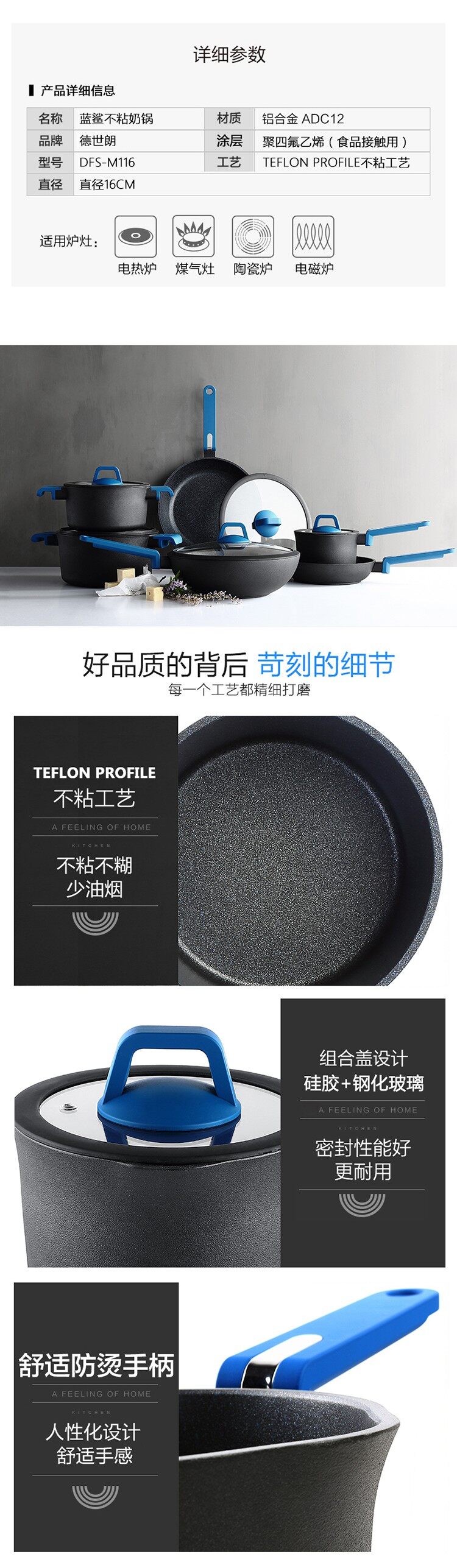 德世朗 蓝鲨不粘奶锅 DFS-M116 DFS-M116