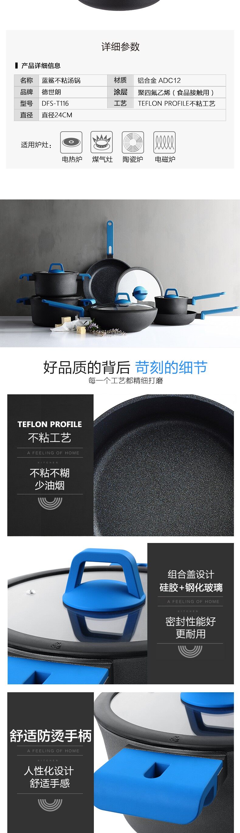 德世朗 蓝鲨不粘汤锅 DFS-T116 直径24cm DFS-T116