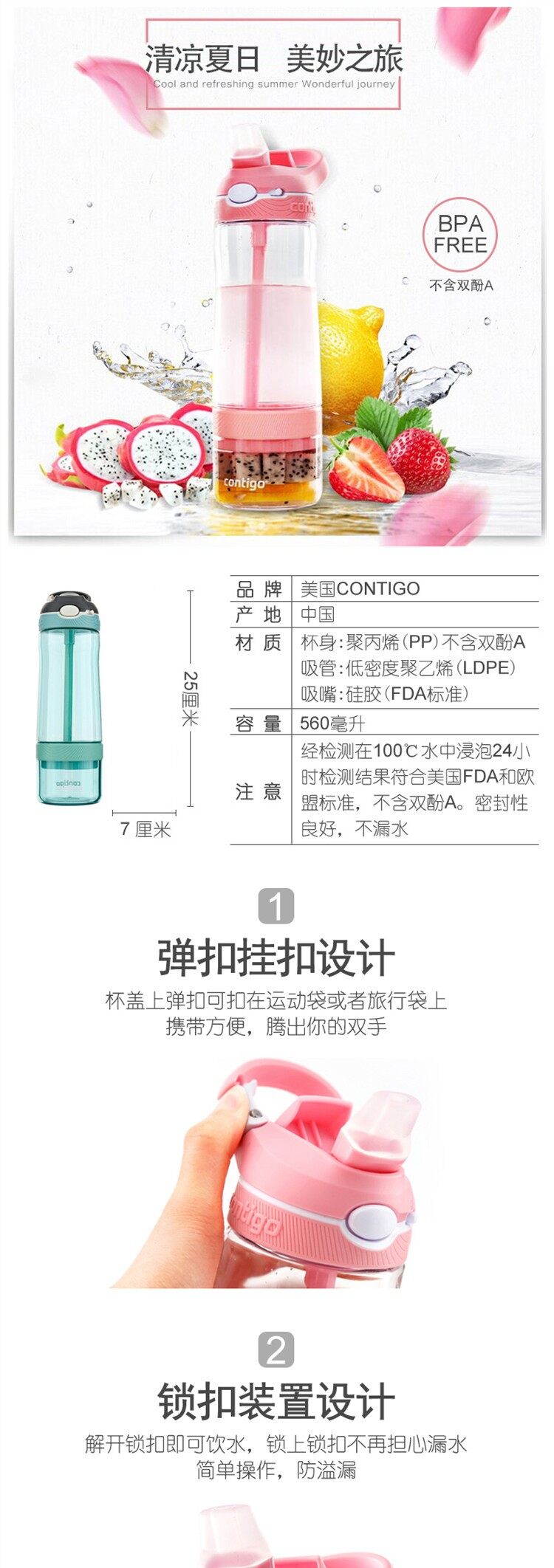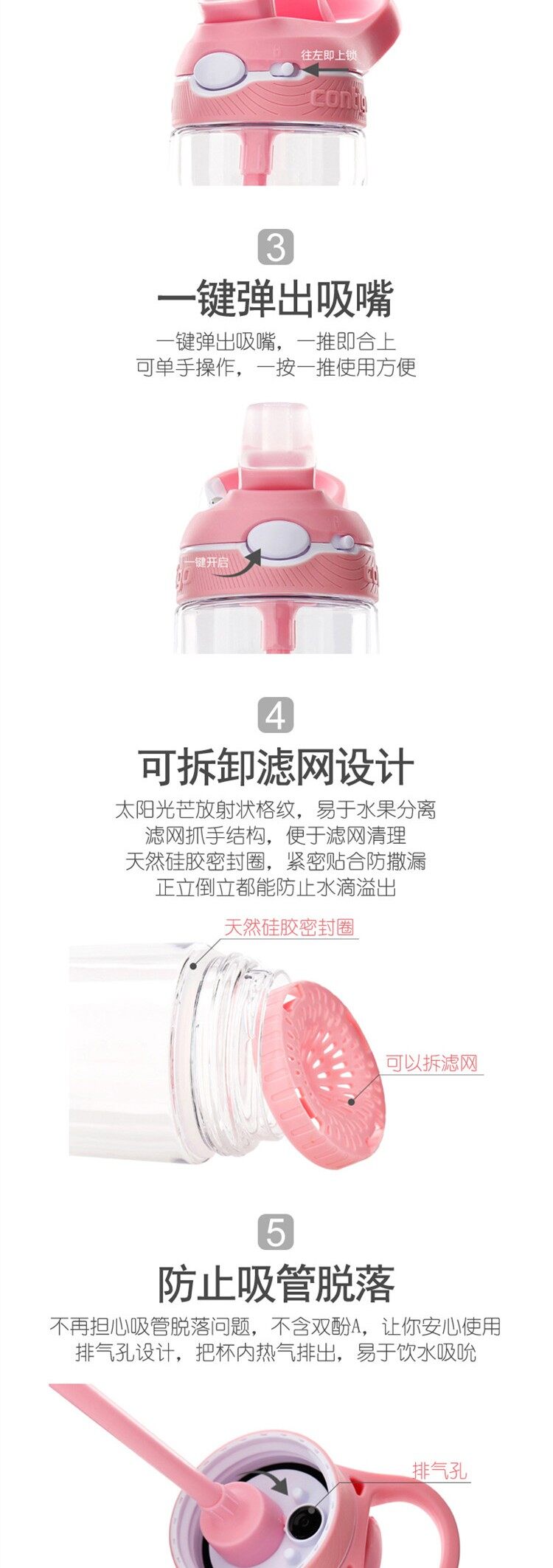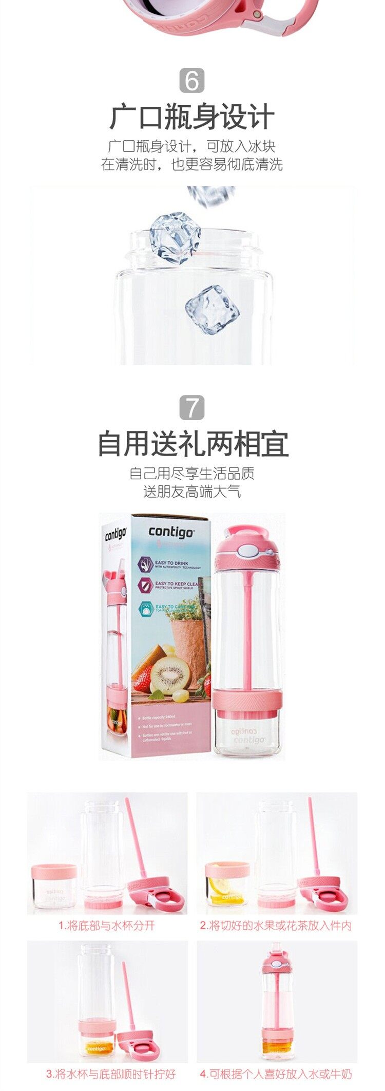 康迪克(contigo)果茶滤网吸管杯 粉色 560ml 560ml