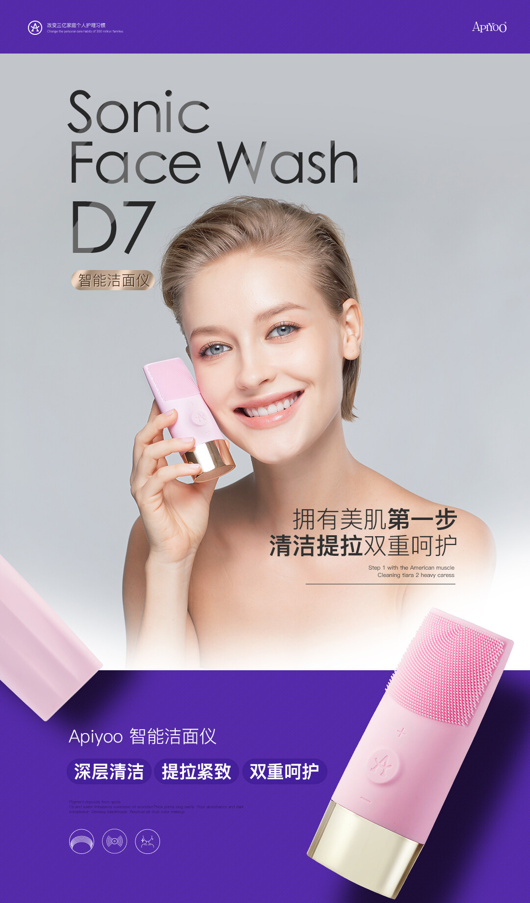 APIYOO-艾优声波洁面仪 白色 D7